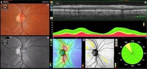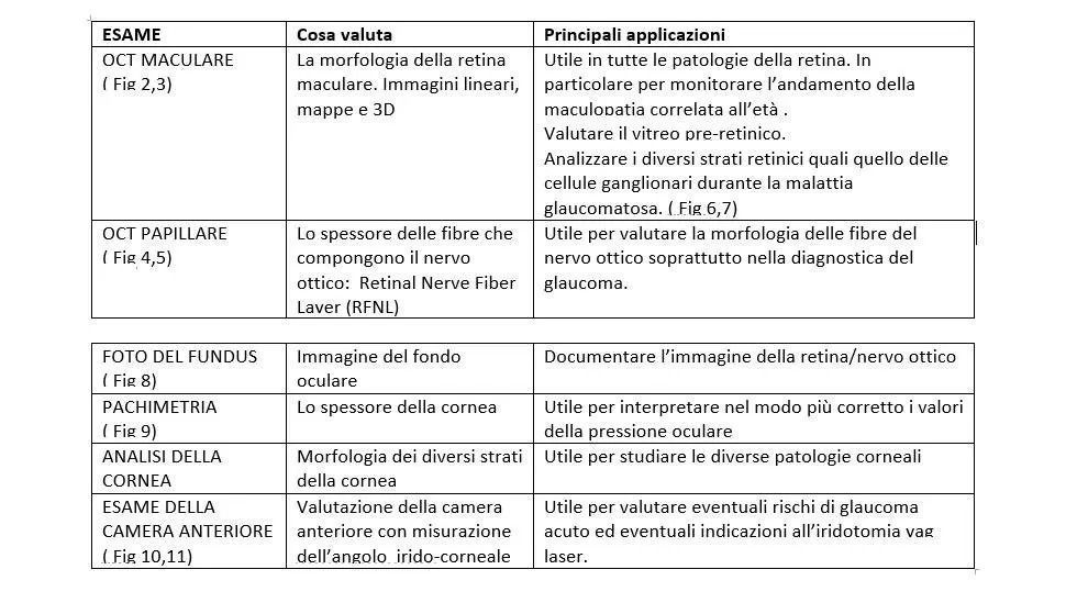 • OCT papillare, utile per valutare la morfologia delle fibre del nervo ottico soprattutto nella diagnosi del glaucoma